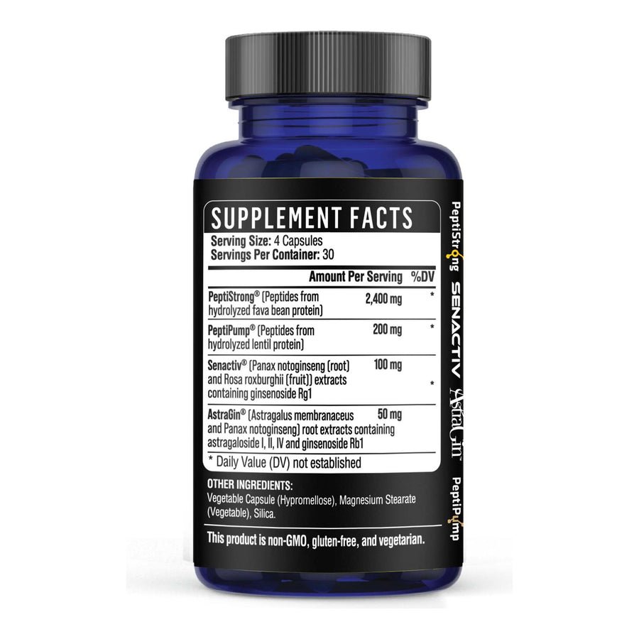 PeptiStrong®, Senactiv®, PeptiPump® and AstraGin® work synergistically to target multiple mechanisms, to provide a wide range of benefits in muscle health.
