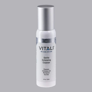 'Reveal your freshest, most revitalized skin with Vitali’s Gentle Exfoliating Cleanser. This lactic acid cream cleanser gently exfoliates and removes damaged skin cells, priming your skin for optimal absorption of Copper Peptides. Infused with soothing Safflower Seed oil and firming Oat Amino Acids, it works to improve your skin’s texture and radiance, making it the perfect choice for sensitive skin or if you’re looking for a gentle alternative to Glycolic Acid.