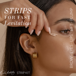 This specialised edition of the Qi beauty Home Kit features STRIPS—adhesive patches holding 3 or 5 gold-coated micro-magnets (Qi STIMs) in a line—designed to deliver concentrated energy to specific areas of the face. Ideal for refining fine lines and restoring energetic skin function with precision.