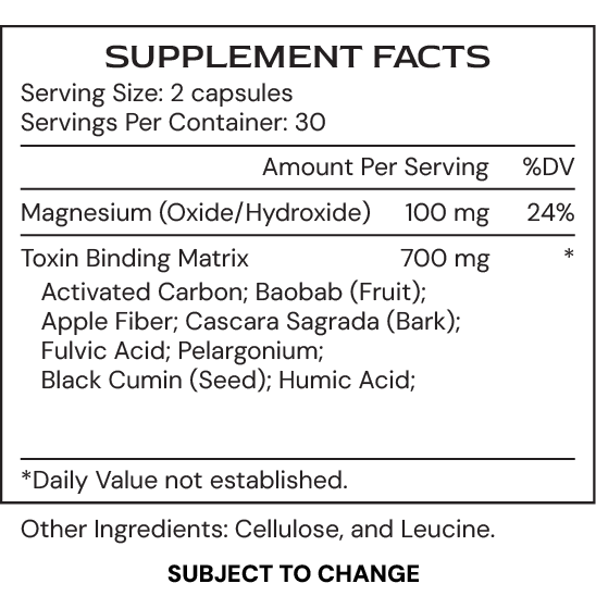 Binds and removes gene disrupting compounds from the GI system left by microbial die-off, environmental toxins, and a modern diet.