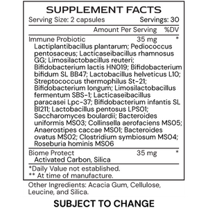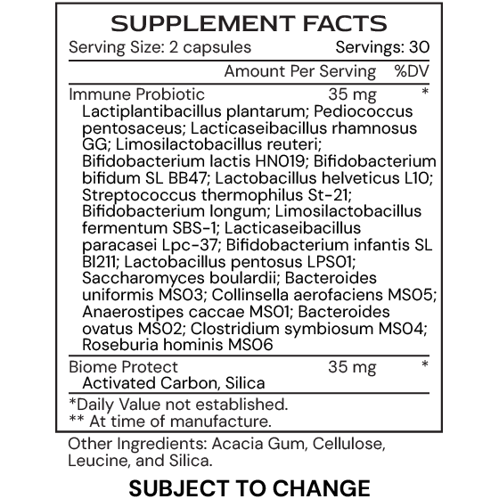 Probiotic that promotes healthy immune responses and provides microbial metabolites to modulate the gut-immune axis.